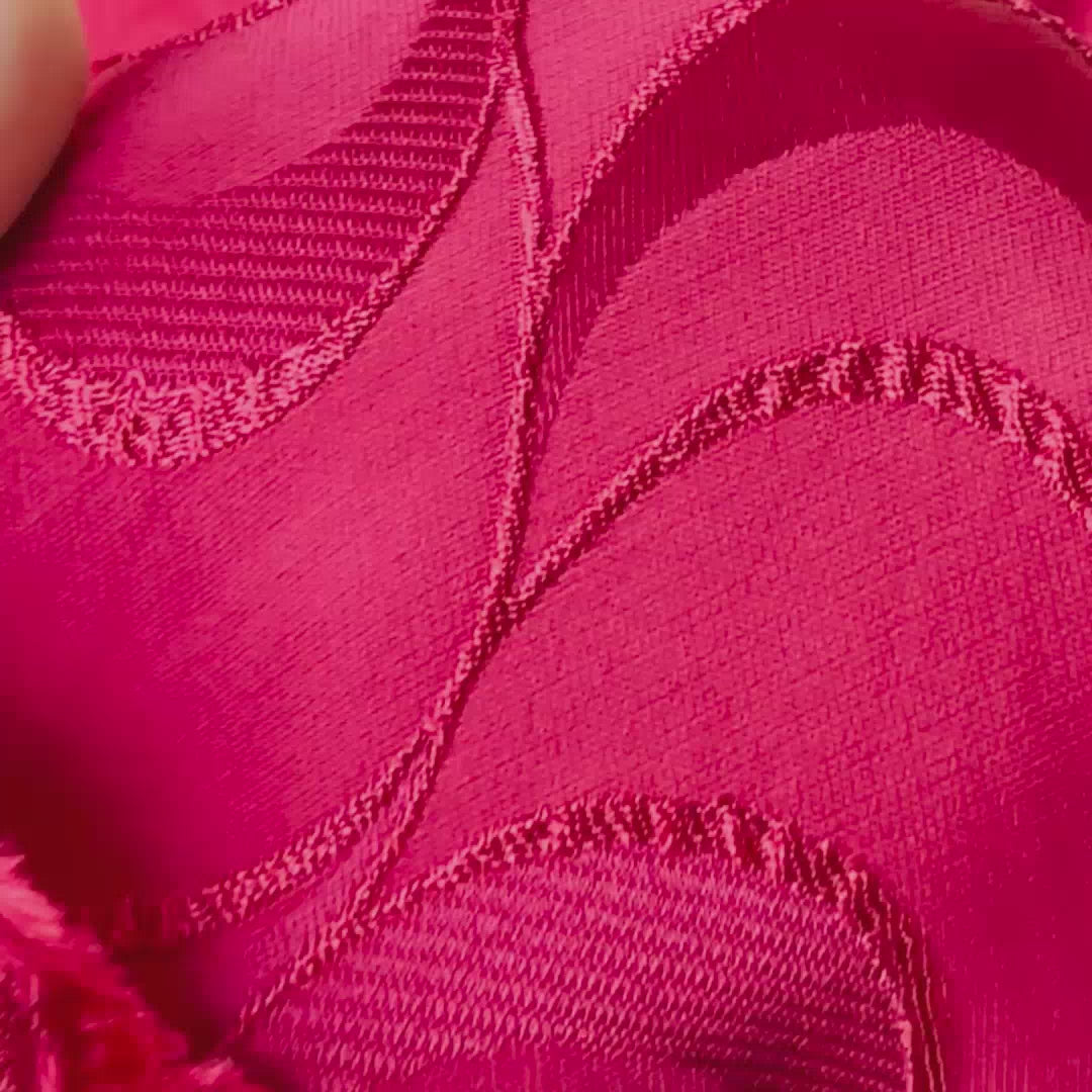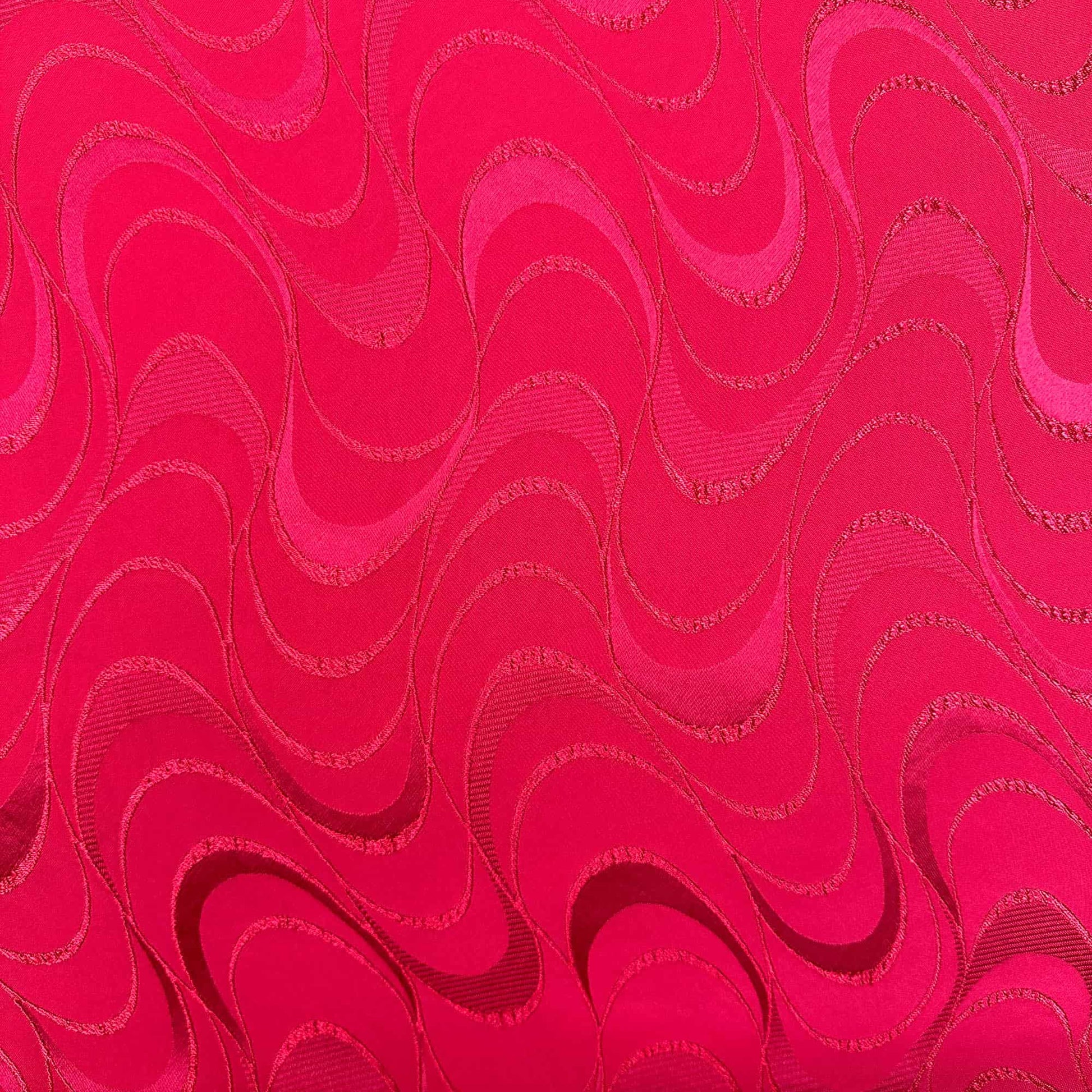 A medium-weight red jacquard woven with lustrous, flowing motifs. This fabric is sourced from a luxury design house on 5th Avenue.